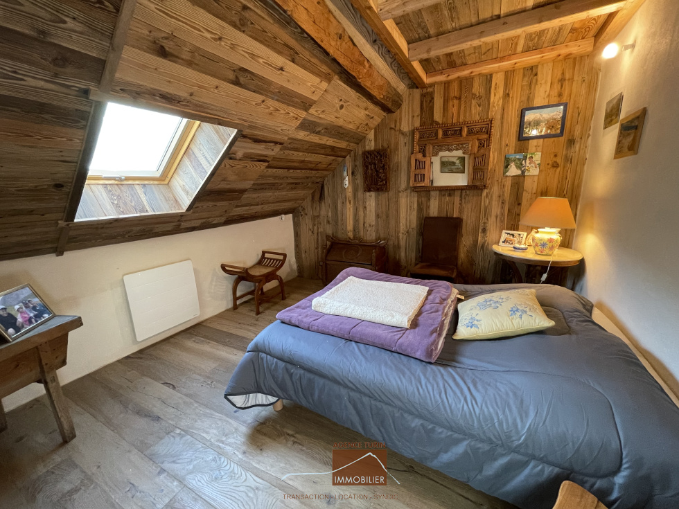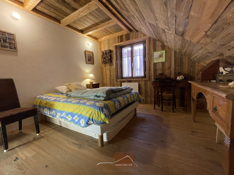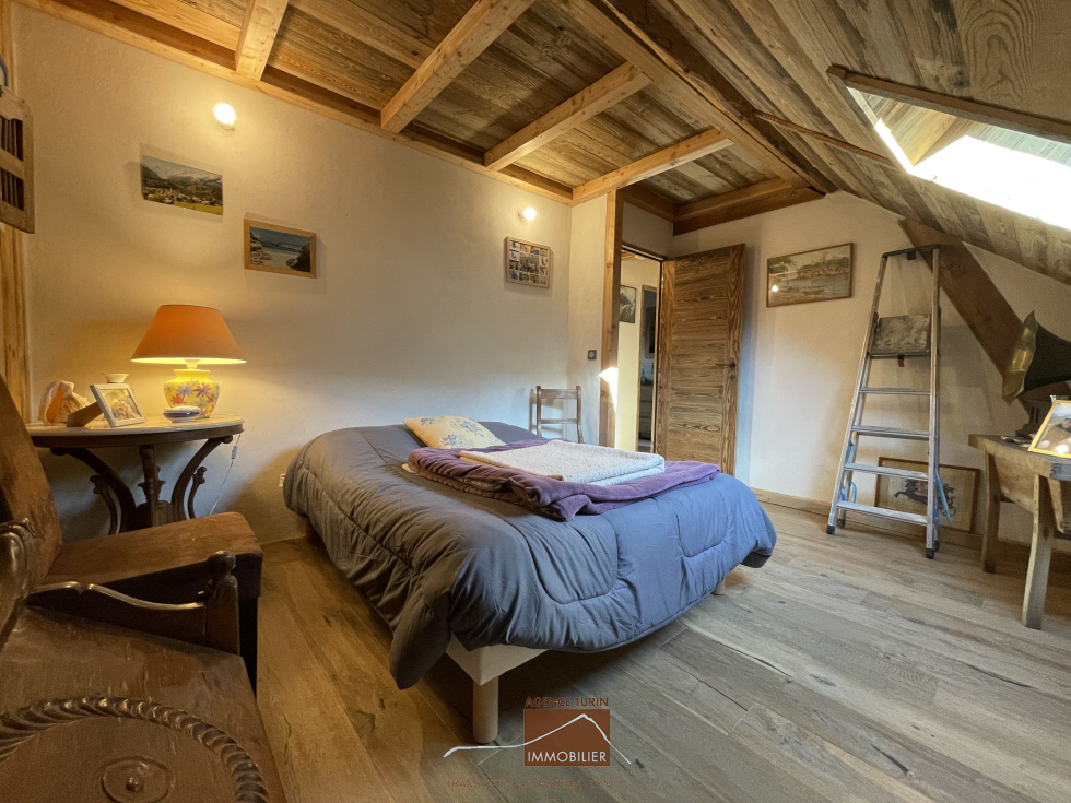 A l'étage, deux belles chambres, un Wc indépendant, une salle de bains.