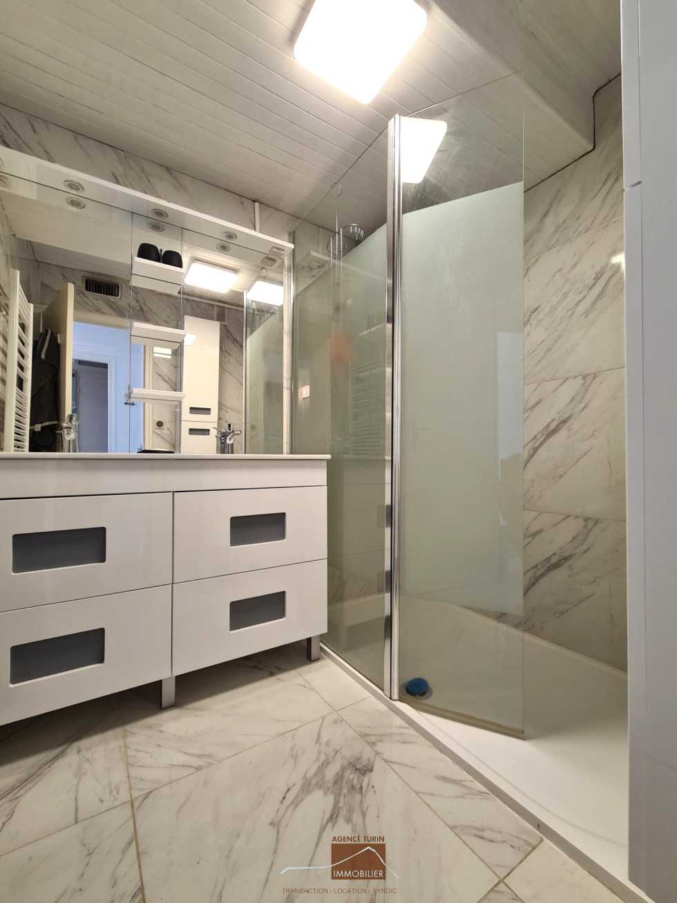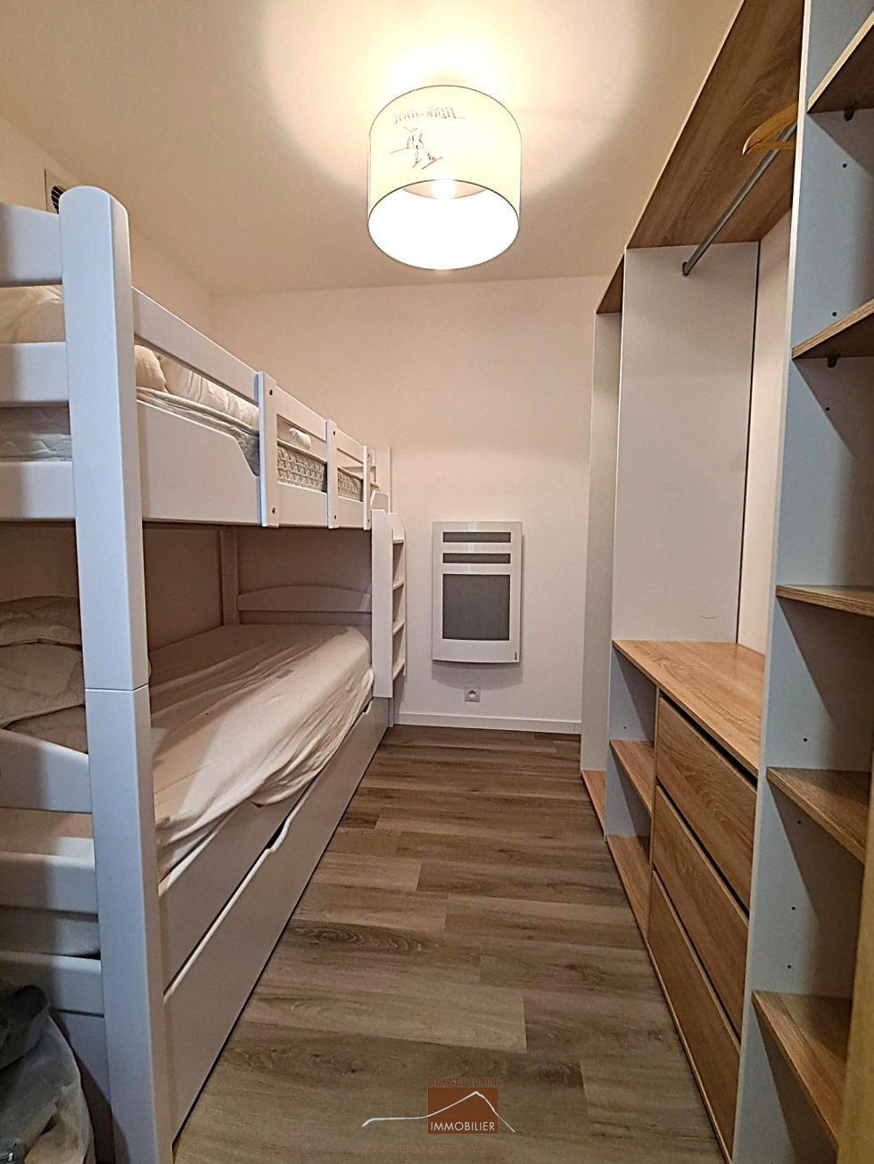 Entrée, cuisine séparée et équipée, salon donnant sur une terrasse avec vue sur les pistes, un coin montagne avec placards, deux chambres donnant également sur la terrasse, une salle d'eau, WC séparés, une seconde salle d'eau avec WC et espace buanderie.