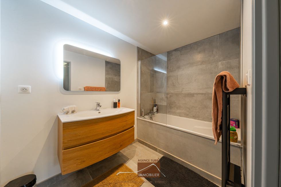 RDJ : Une chambre avec placards, un coin montagne, une salle de bain avec WC, buanderie, espace bureau, une seconde entrée avec nombreux rangements.