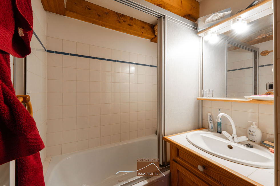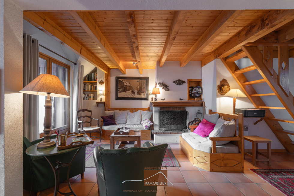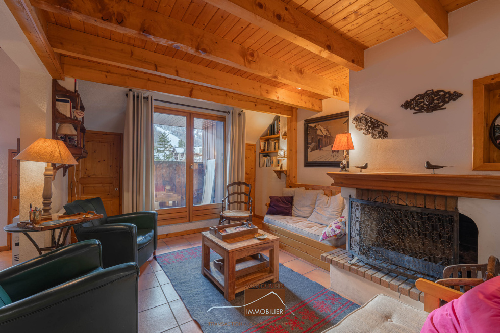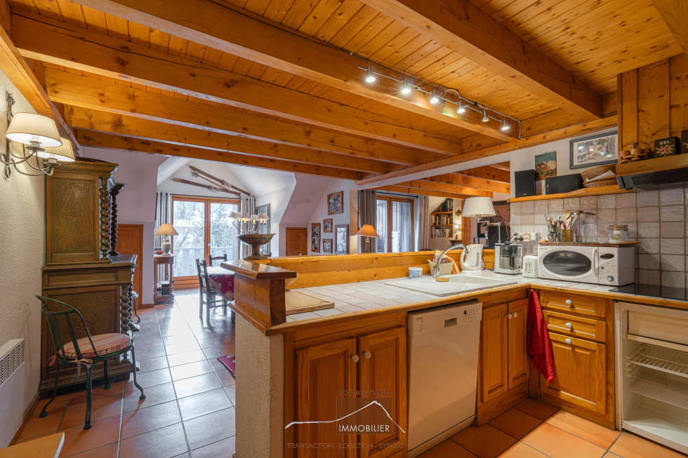 Entrée avec placards, spacieux séjour avec cheminée donnant sur deux balcons offrant une vue dégagée sur les montagnes, cuisine ouverte, aménagée et équipée, une chambre avec placards, une seconde chambre avec salle de bain, WC séparés.