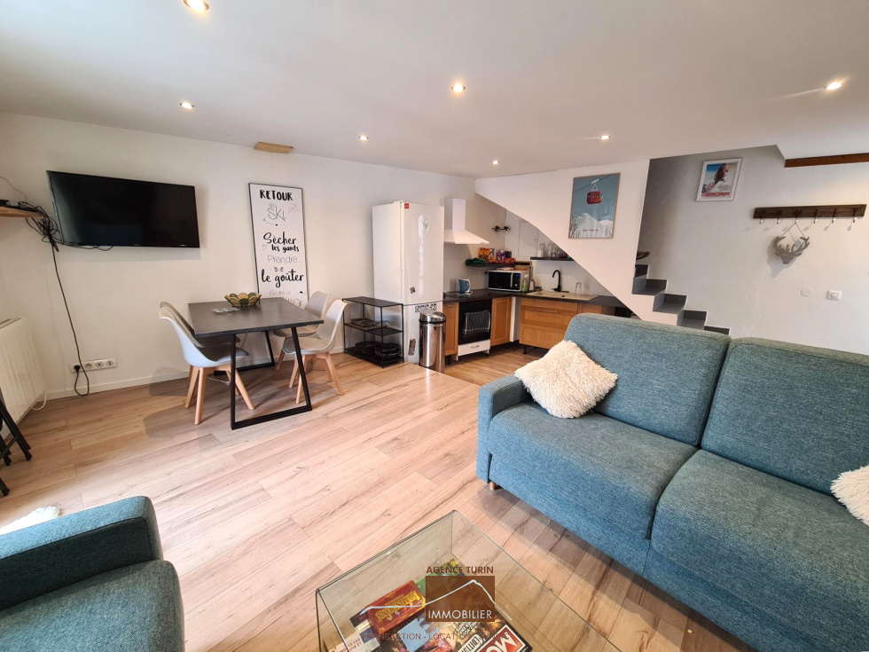 Au coeur du village de Chantemerle, à deux pas des pistes, appartement de type 3 en duplex avec combles à aménager.