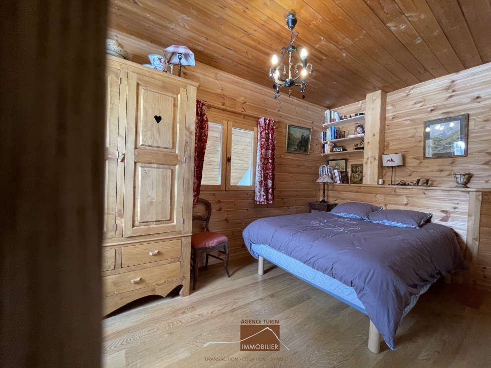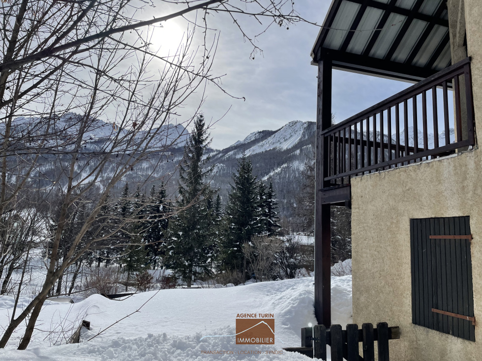 A l'étage, une seconde entrée, une très belle pièce de vie baignée de lumière, séjour cathédrale avec cheminée, tout l'angle vitré donnant accès au balcon, une magnifique vue dégagée sur toute la vallée, le domaine skiable et le glacier de Monêtier.