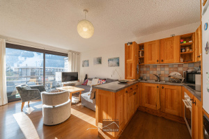 Chantemerle, agréable appartement de type 3 + coin montagne comprenant : Entrée, cuisine séparée et équipée, salon donnant sur une terrasse avec vue sur les pistes, un coin montagne avec placards, deux chambres donnant également sur la terrasse, une salle d'eau, WC séparés, une seconde salle...